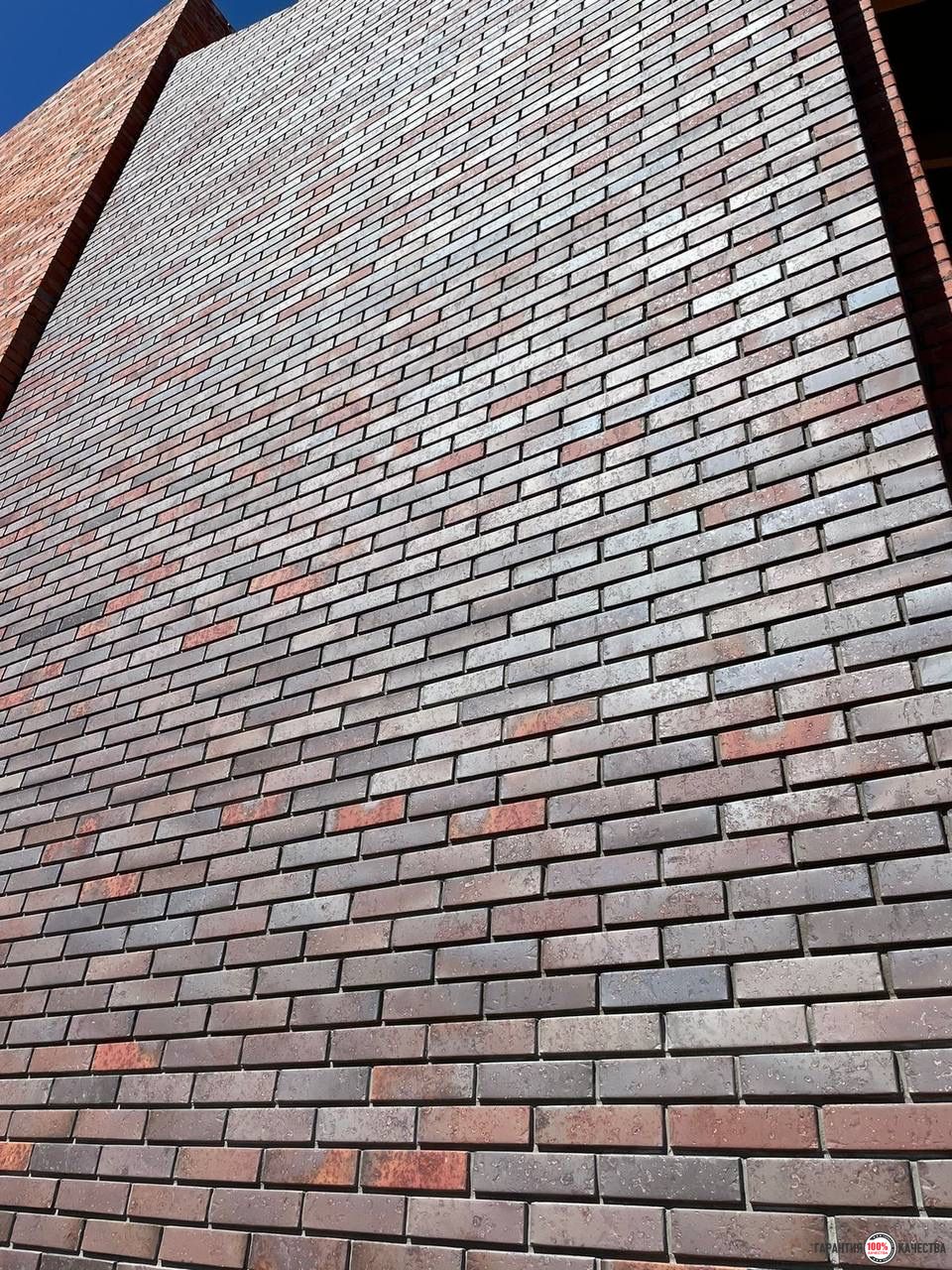 Кирпич имеет гладкую матовую лицевую поверхность с мелкорельефными углублениями произвольной формы. В основе паттерна холодные оттенки коричневого с редкими контрастными градиентами к рыжему.