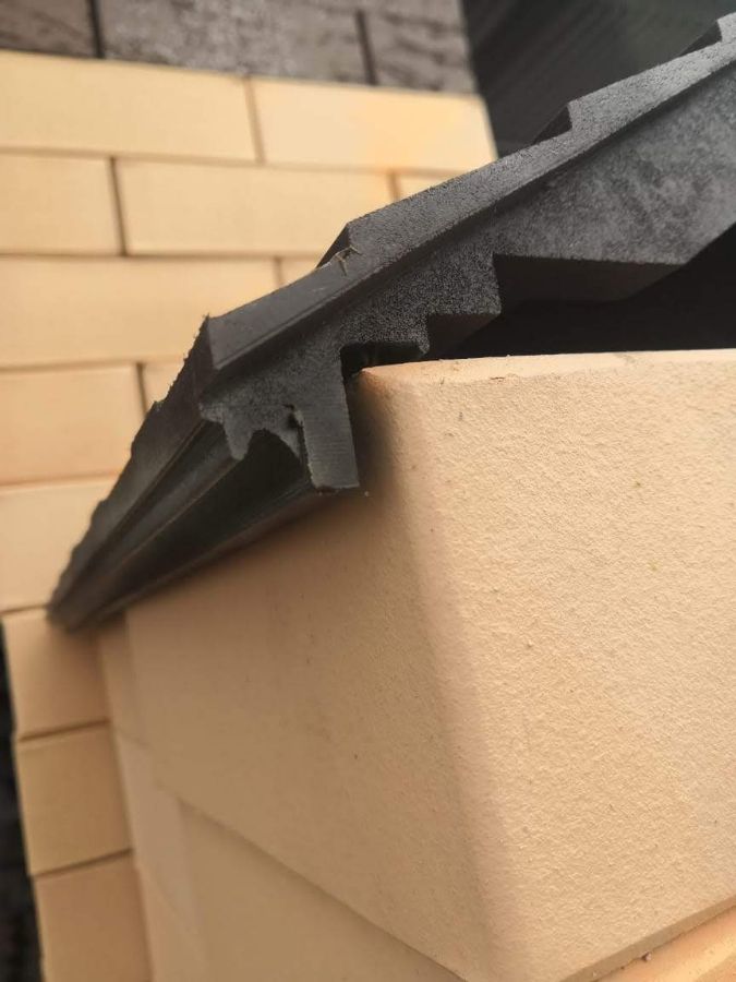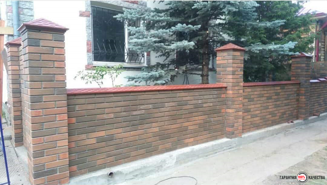 Это новшество исключает попадание стекающей воды с парапетов на кирпичную кладку стен забора.