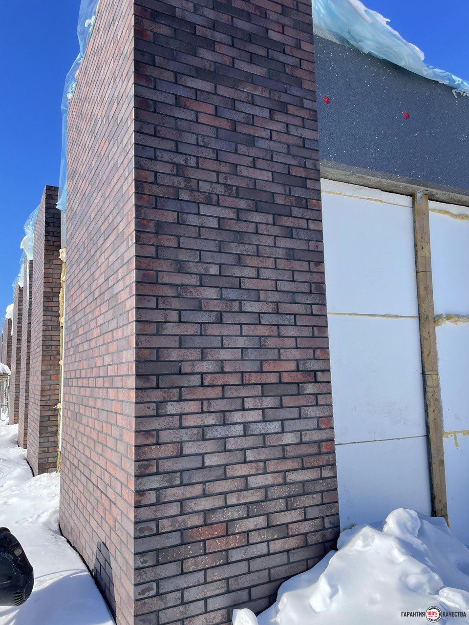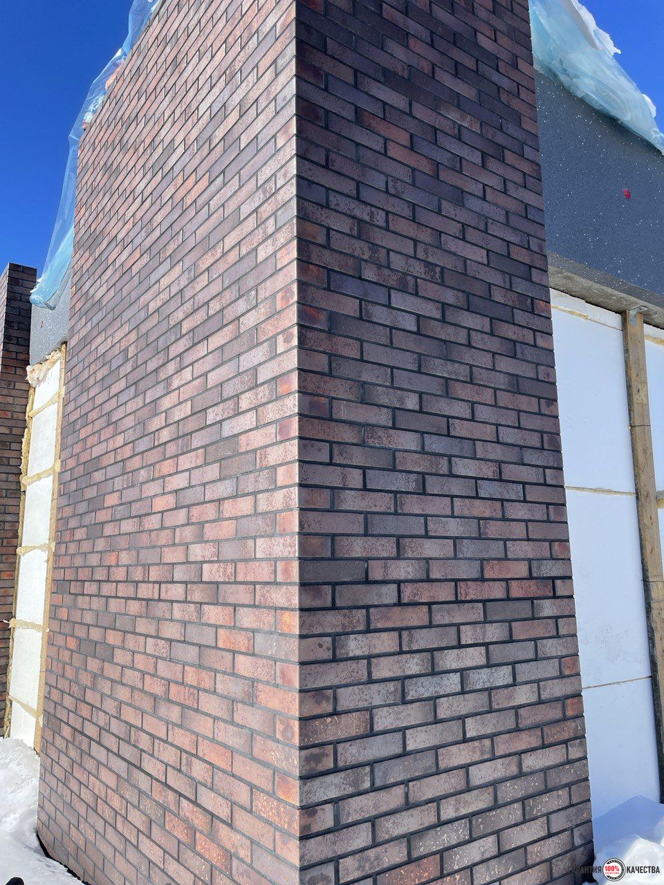 Кирпич имеет гладкую матовую лицевую поверхность с мелкорельефными углублениями произвольной формы. Присутствует перламутровый блеск. В основе паттерна теплые оттенки от коричневого до темно-коричневого.