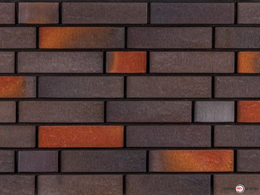 "Древний огонь" олицетворяет в себе вельветовую фактуру с небольшими наплывами. Его слегка пестрый паттерн, начиная от темно-коричневого и заканчивая черным оттенком, дополнен элементами ярких всполохов от красного до ярко-оранжевого, словно зажженный пламенем сгусток древнего огня. Кирпич имеет текстуру бархат.
